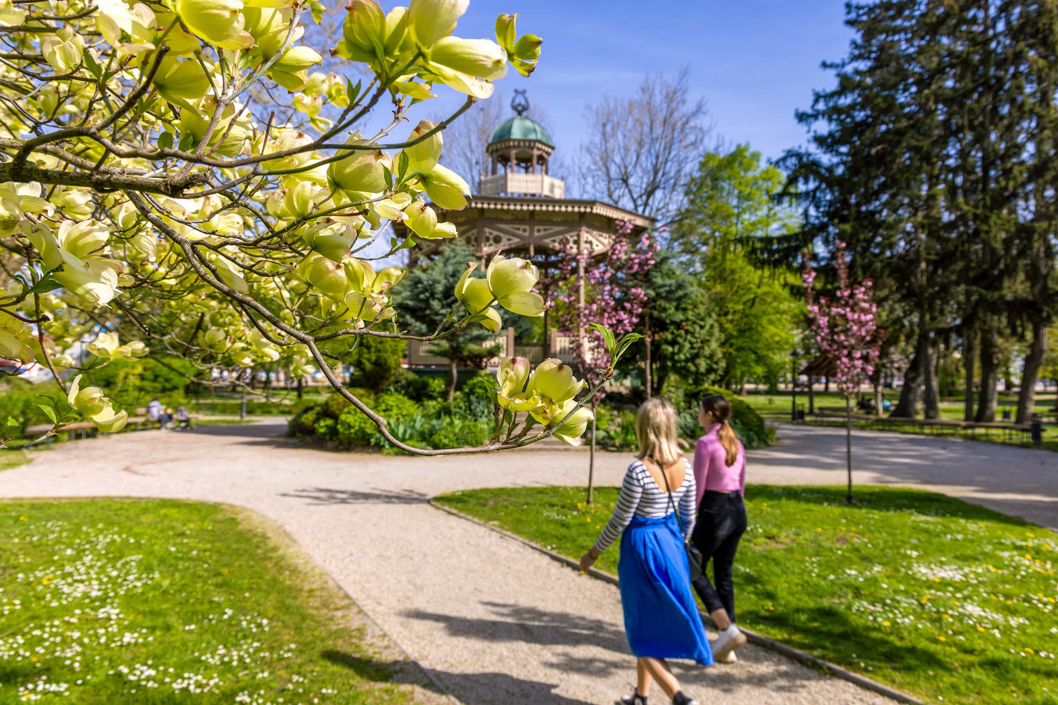 Park je nastao 1856. kada je kotarski predstojnik Grigorije Roksandić uz, tada još postojeći, sjeverni gradski opkop (danas južni rubni dio Zrinskoga trga) dao posaditi dvije aleje javora. On je i 1863. drvoredima javora zasadio zapadni dio opkopa uz današnju Nemčićevu ulicu. Taj drvored odlično se vidi na najstarijim fotografijama koprivničkoga gradskog središta, ali i na prvome katastarskom planu Koprivnice iz sredine 19. stoljeća. Prvobitni drvored protezao se od današnje gradske vijećnice do kraja Zrinskoga trga pa je onda skretao prema jugu u Nemčićevu ulicu. Drvoredi javora poslije su poslužili gradskomu vrtlaru Dragutinu Ruhlu za postupno oblikovanje današnjega izgleda parka na prostoru srušenoga sjeverozapadnog dijela koprivničke utvrde. Ruhl je postao gradskim vrtlarom 1884., a na toj je dužnosti bio punih četrdeset godina. Pod njegovim je vodstvom između 1891. i 1893. bio zasađen gradski park. Ruhla je naslijedio Ivan Flatz koji je do 1960. upravljao koprivničkim parkovima. Park se početkom 20. stoljeća oblikovao u izvjesnom kompromisu između baroka i engleskoga slobodnog pejzažnog stila, odnosno u duhu kraja 19. stoljeća. Takav karakter park je uglavnom sačuvao do danas. Za središnji gradski park bilo je osobito važno što je nakon velike izložbe u Budimpešti 1896. u središte parka bio postavljen drveni paviljon, djelo Antuna Rogine. Paviljon je bio postavljen na podnožje od kamena, složeno 1894. od neke stare građevine za koju neki pretpostavljaju da su to možda ostatci srednjovjekovne crkve. Paviljon i danas povremeno služi za glazbene nastupe.