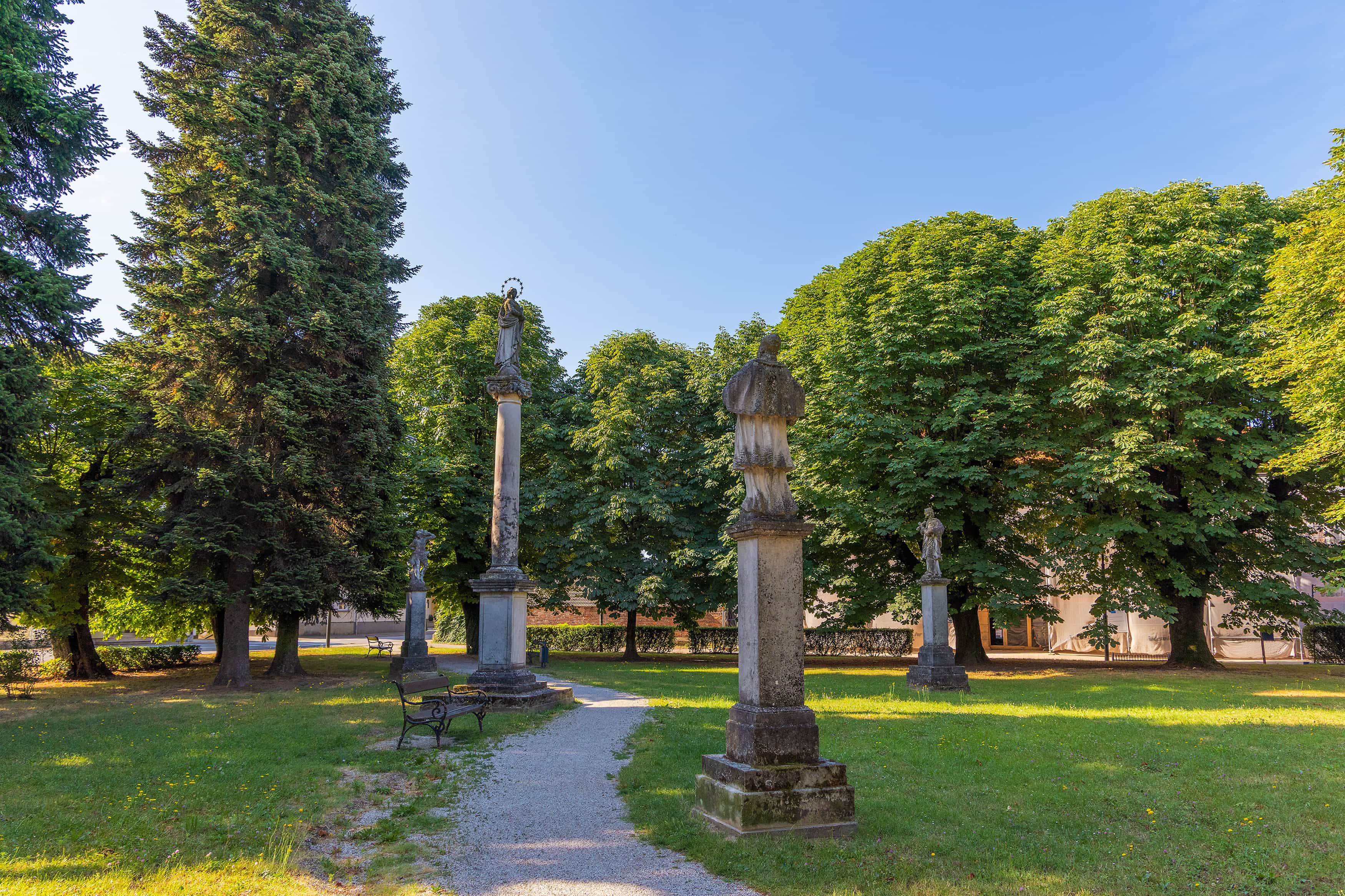 Na prostoru koji danas obuhvaća Trg Leandera Brozovića, u ranome novom vijeku postavljene su skulpture svetaca ispred ulaza u nekadašnju gradsku vijećnicu. Skulpture Blažene Djevice Marije i sv. Sebastijana najstariji su, a skulpture sv. Karla Boromejskoga i sv. Ivana Nepomuka jesu iz sredine 18. stoljeća. Te su skulpture 1863. premještene u sredinu parka te postavljene u obliku kako i danas stoje. Dodana im je skulptura sv. Florijana iz prve polovine 18. stoljeća, koja je u taj park donesena nakon potresa koji se dogodio 1880.