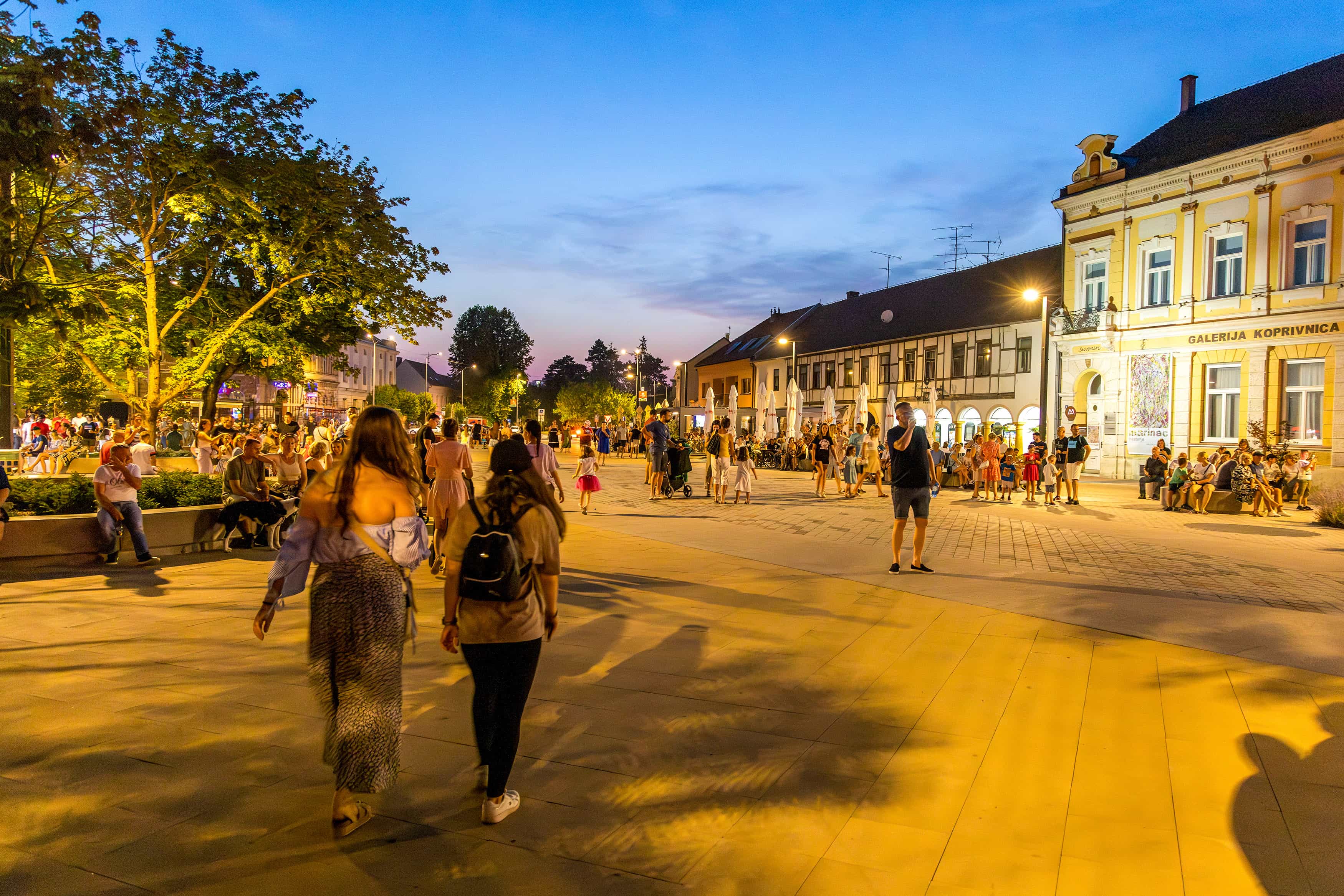 Na Zrinskome trgu, formiranomu u drugoj polovini 17. stoljeća, koji zbog otvorenosti prema parku izgleda „kao otvorena šaka“, s jedne je strane niz kuća koji je tržni prostor štitio od sjevernih vjetrova, a s druge, južne strane, na prostoru gdje su se nekada pružali bedemi, nastao je gradski park, koji se pruža u nastavku od Zrinskoga trga. Većina zgrada izgrađena je krajem 19. ili početkom 20. stoljeća. Među izuzetcima jest zgrada pivnice iz 18. stoljeća, izvorno izgrađena kao barokna trgovačka kuća u najživljem dijelu grada, najvjerojatnije na mjestu nekoliko manjih, prijašnjih i trošnije građenih trgovačkih objekata, koji su već tijekom 17. stoljeća zauzeli lokacije na važnome putu prema Varaždinu. Kao i arkadni hodnici na katu, tako su i trjemovi prizemnoga dijela bili naknadno često zatvarani. Barokne arkade otvorene su tijekom uređenja pivnice 1972. s vrijednim umjetnički oslikanim vitrajima i skladno uređenim interijerom. U najnovijoj adaptaciji 1990. fasadi je vraćen izvorni oblik. U pivnici je moguće kušati mnogobrojna tradicionalna podravska jela i pića, što je jedinstveni doživljaj za svakoga gurmana. U blizini je i zgrada Knjižnice i čitaonice „Fran Galović“ te mnoga druga vrijedna zdanja uglavnom iz 19. stoljeća. Zrinski trg temeljito je uređen 2023.